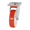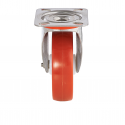 Колесо поворотное на кронштейне из нержавеющей стали. Контактный слой из термопластичного полиуретана твердостью 55 Шор D. Основание: полиамид 6. Ступица оснащена подшипником скольжения (втулка). Поворотный кронштейн серии NLX из нержавеющей стали, оснащен двухрядным подшипником, и прослужит в три раза дольше оцинкованного аналога. Полиуретановый слой значительно снижает шум и вибрацию, бережно относится к полам. Отличные характеристики сопротивлению качения и эластичности, высокая устойчивость к износу и сопротивляемости усилию на разрыв. Рекомендации для использования: пищевая и химическая промышленность. Легко моются и дезинфицируется. Температурный диапазон эксплуатации от -15 до +80С. Характеристики: